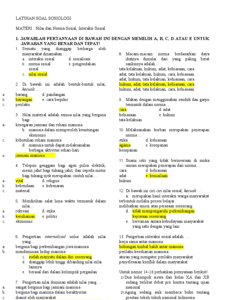 Nilai ini menjadi pedoman hidup bagi anggota masyarakat dan dianggap baik dan benar serta wajib dipatuhi. Siswa sd berbaris di depan kelas sebelum pelajaran dimulai dan masuk satu per satu secara berurutan setelah salim (mencium tangan) pada gurunya. Nilai sosial juga bias bersumber. Induk kalimat menyatakan sebab, dan anak kalimat menyatakan akibat; Nilai ini berkaitan dengan asumsi dan budaya masyarakat setempat, sehingga tidak ada peraturan tertulis mengenainya.